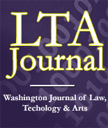 The Journal accepts outside submissions from students, law professors, and practicing attorneys. For more information about the Washington Journal of Law, Technology & Arts please download the entire Fall 2011 issue of the Washington Journal of Law, Technology & Arts or visit http://www.law.washington.edu/wjlta for individual articles.