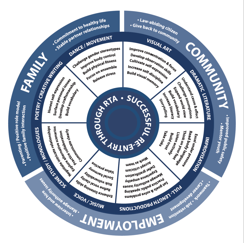 Rehabilitation Through the Arts’ “Skills Wheel” connecting different art forms to skills that reduce recidivism